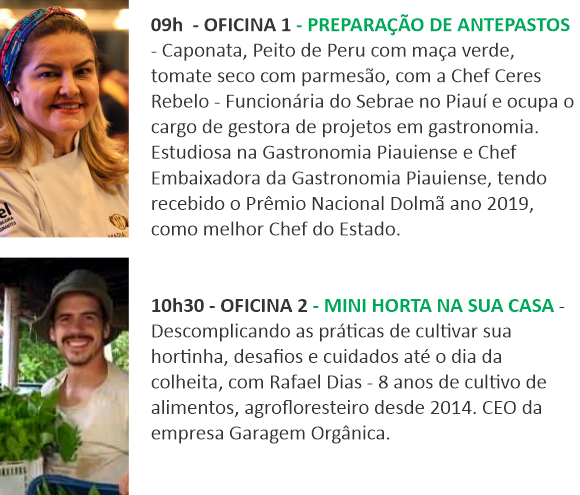 Essas mesmas oficinas também serão transmitidas em canais digitais do Sebrae no Piauí. Para ter acesso na forma online os interessados devem se inscrever antecipadamente.