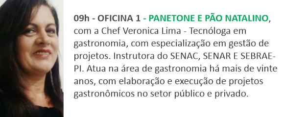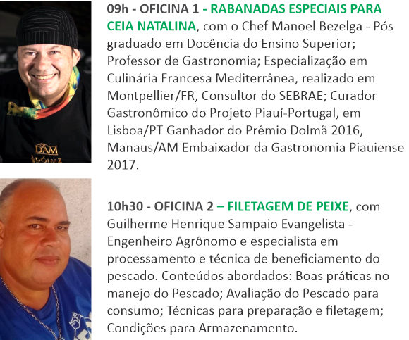 Serão realizadas oficinas gastronômicas presenciais com vagas são limitadas a 25 participantes. Os temas serão Panetones e Pães Natalinos, Horta Orgânica, Antepastos, Rabanadas Especiais e Filetagem de Peixes.