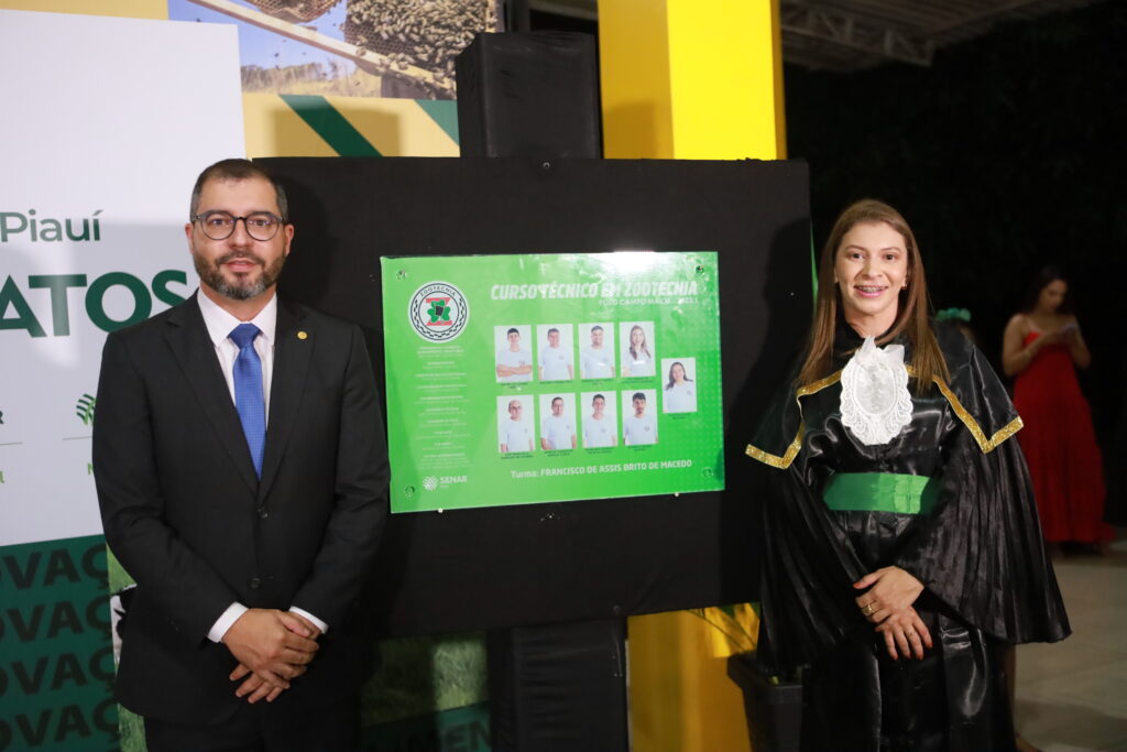 A solenidade contou com a presença de familiares, amigos e tutores, além de autoridades importantes para o setor: Diego da Paz Carvalho, Superintendente do SENAR Piauí; Mairla Portela, Gerente de Educação Formal; Filemon José Francisco de Sousa Nogueira Paranaguá, Prefeito Municipal de Corrente e Presidente do Sindicato Rural de Corrente; Luís Pereira, Presidente do Sindicato Rural de Pio IX, Patrícia Rocha, Gerente Administrativa e Financeira, Sílvio Brito, Gerente da Assistência Técnica e Gerencial-ATeGe os produtores rurais Ricardo Salomão Aboud e Rossana Aboud.